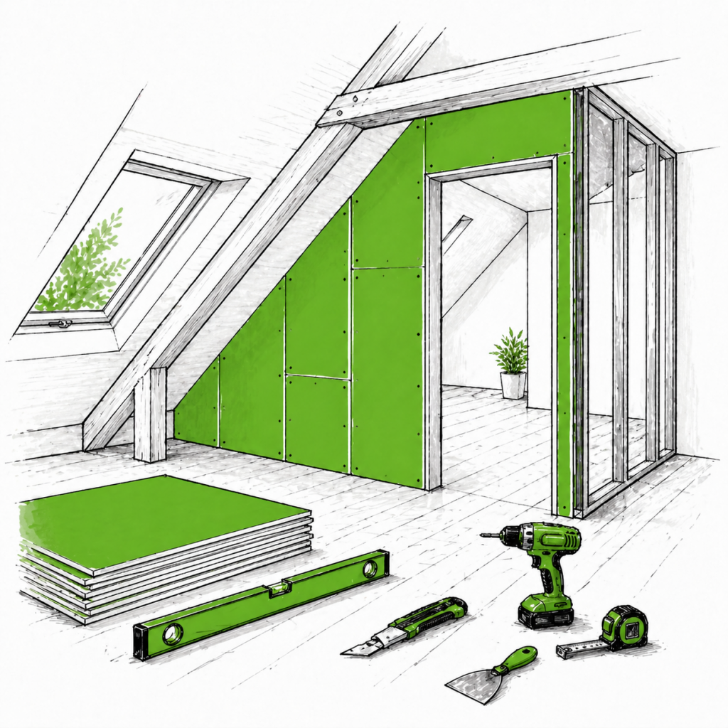 Ob Wohnraum unter dem Dach, neue Raumaufteilungen oder Innenausbauarbeiten: Mit Trockenbau und Dachstuhlausbau schaffen wir Lösungen nach Ihren Vorstellungen.