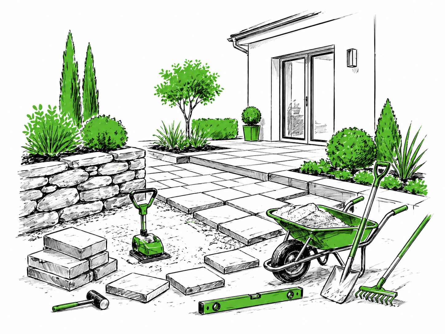 Vom neu angelegten Garten bis zur gepflasterten Einfahrt gestalten wir Außenbereiche funktional, langlebig und ansprechend – sorgfältig geplant und fachgerecht umgesetzt.